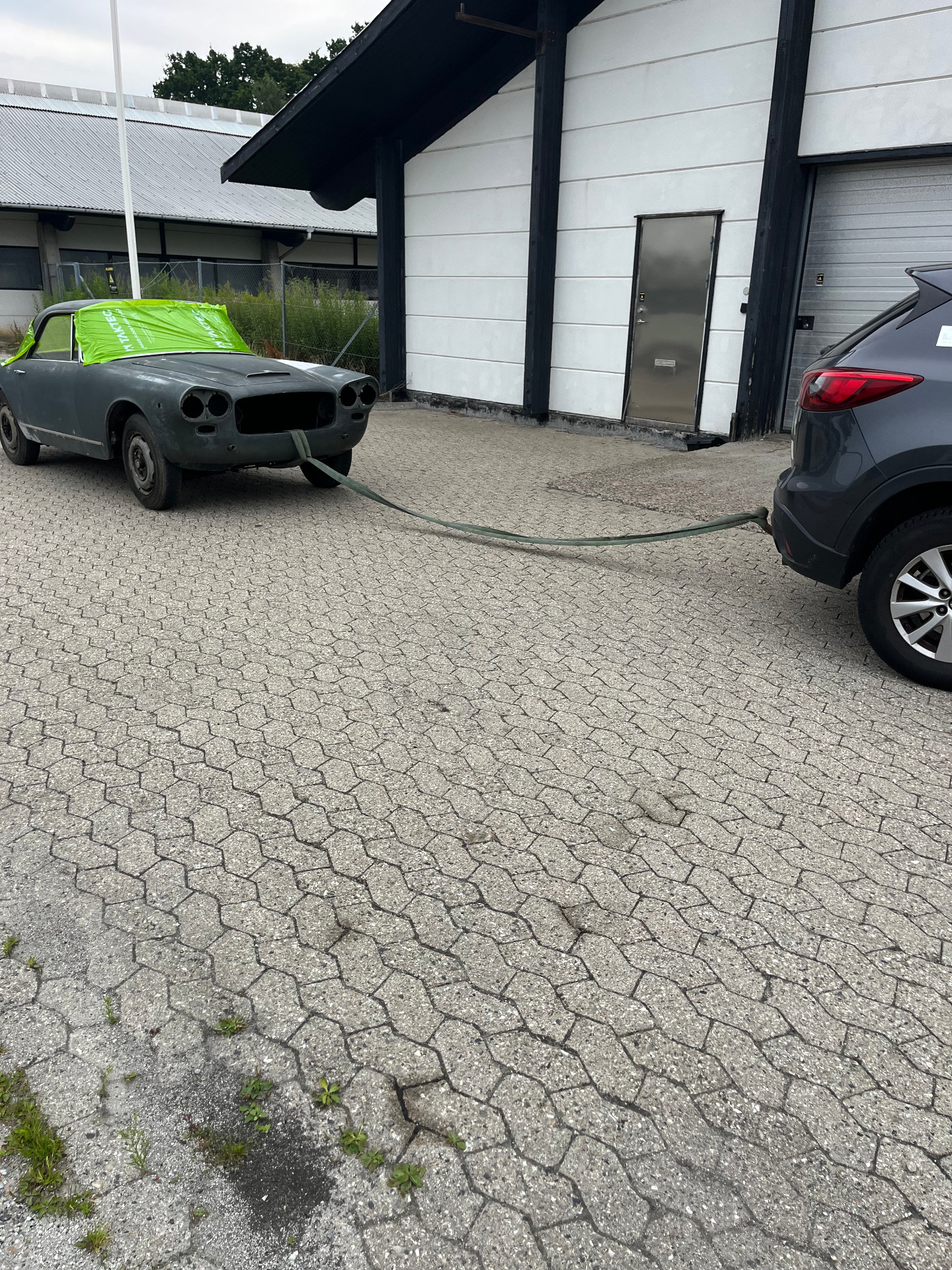 At this point I was not sure when the transport company would arrive, but anyway, the car would only have to be towed accross the street and from ther it could be loaded on to the trailer.
