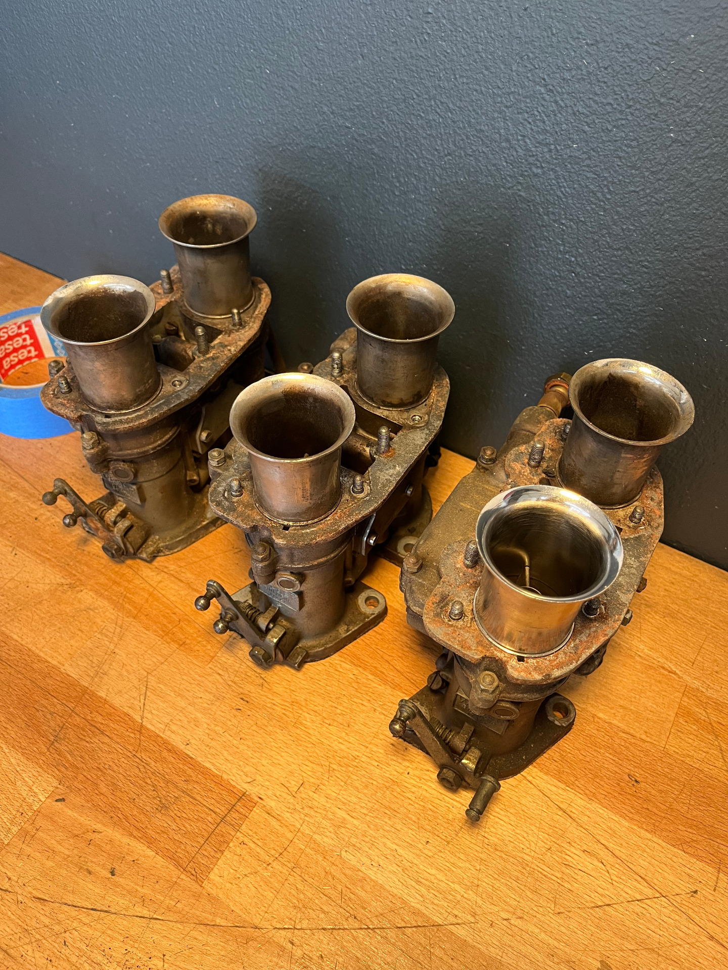 I took af the carburettors, those "trompets from Bologna" are so cool, sorry to see them hidden away inside the airbox, when they are rebuild again.
